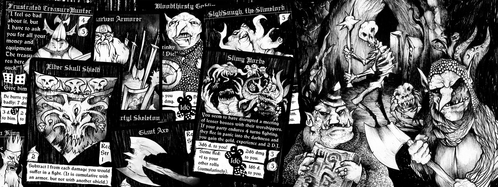 In 2020, I started designing this game with one goal in mind: to revive the vibe of the good old PC dungeon crawlers (like Dungeon Master, Eye of the Beholder, Lands of Lore, Wizardry and similar). I put the project on hold a few times since, as it was too difficult for me to finish, but finally in 2026, we have a playable version here! It may still have some flaws as I am rather just a big fan of these games and an illustrator than a professional game designer, but I decided to publish this version nevertheless, hoping it will amuse similarly affected individuals. I will promptly react to all feedback, so if there are some details missing in the rules or stuff, I will clarify them in the BGG profile with the game. Therefore, be ready to work with that page as well, please.