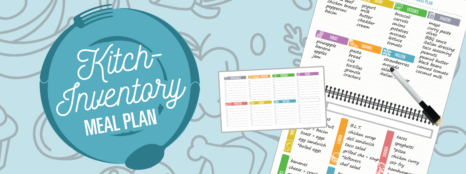 This Kitch-Inventory (kitchen inventory) system is the result of several years of failed attempts to overcome my busy schedule, adult ADHD, and a lack of interest in cooking, and find ways to simplify my meal planning. After much trial and error, I came up with this "1-2-3" meal-planning tool that helps me keep my food inventory, meal list, and grocery list all in one place, and ultimately, eat better food.