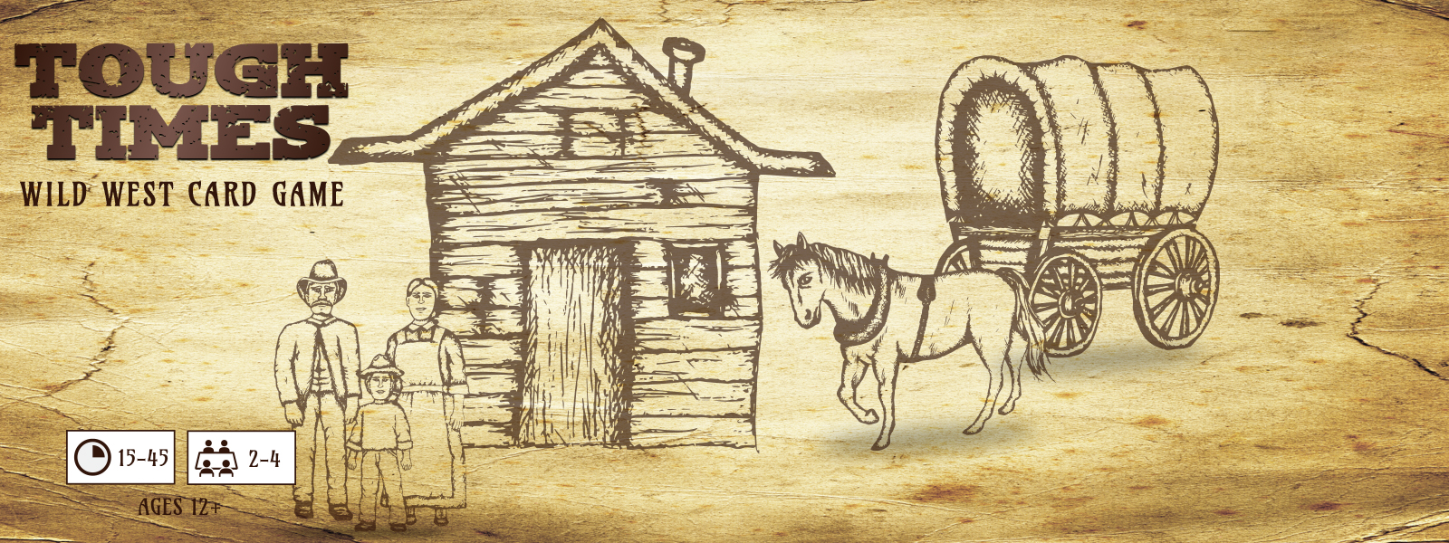 Tough Times is an easy to learn die and card game for 2-4 players. The object of the game is to become the first player to achieve stability by having a Job, Family, Shack, Horse & Wagon, and at least 10 Gold. You'll need to avoid things such as Bandits, Shootouts, and Natural Disasters! Thankfully, you can acquire items to help you out along the way such as Canteen, Food, Fur Coat, Hammer, and Snake Oil.