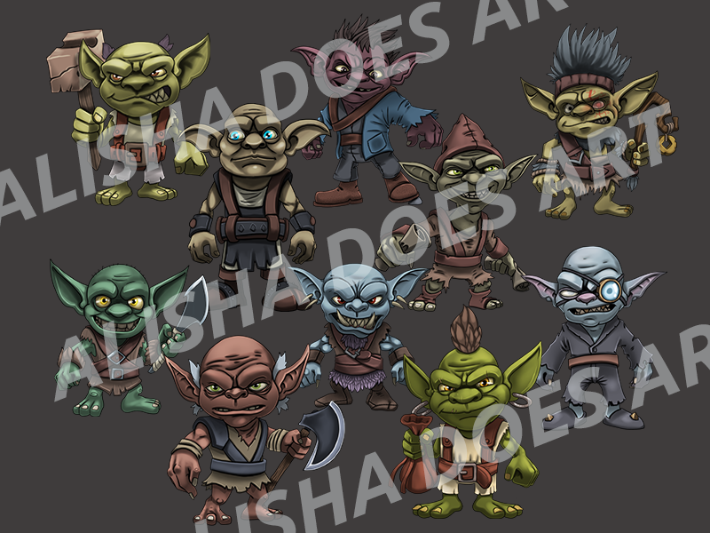 10 unique goblins as seen in the game "All Hail The Goblin King"