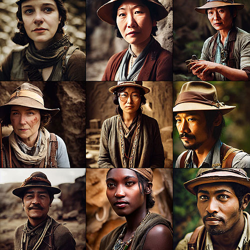 High quality large icons featuring Egyptian archaeologists from the early 1900s for concept art, pro