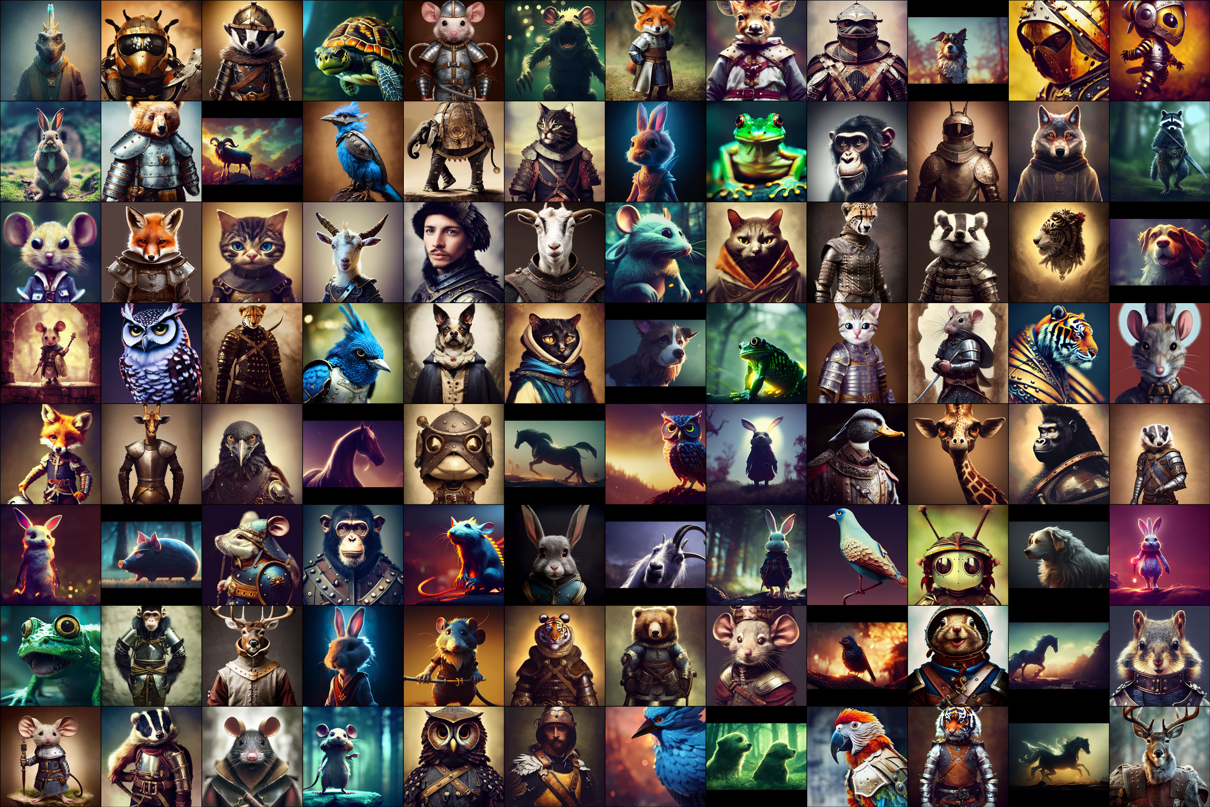 This is a huge bundle of images generated in a specific and consistent style, focused on animals and