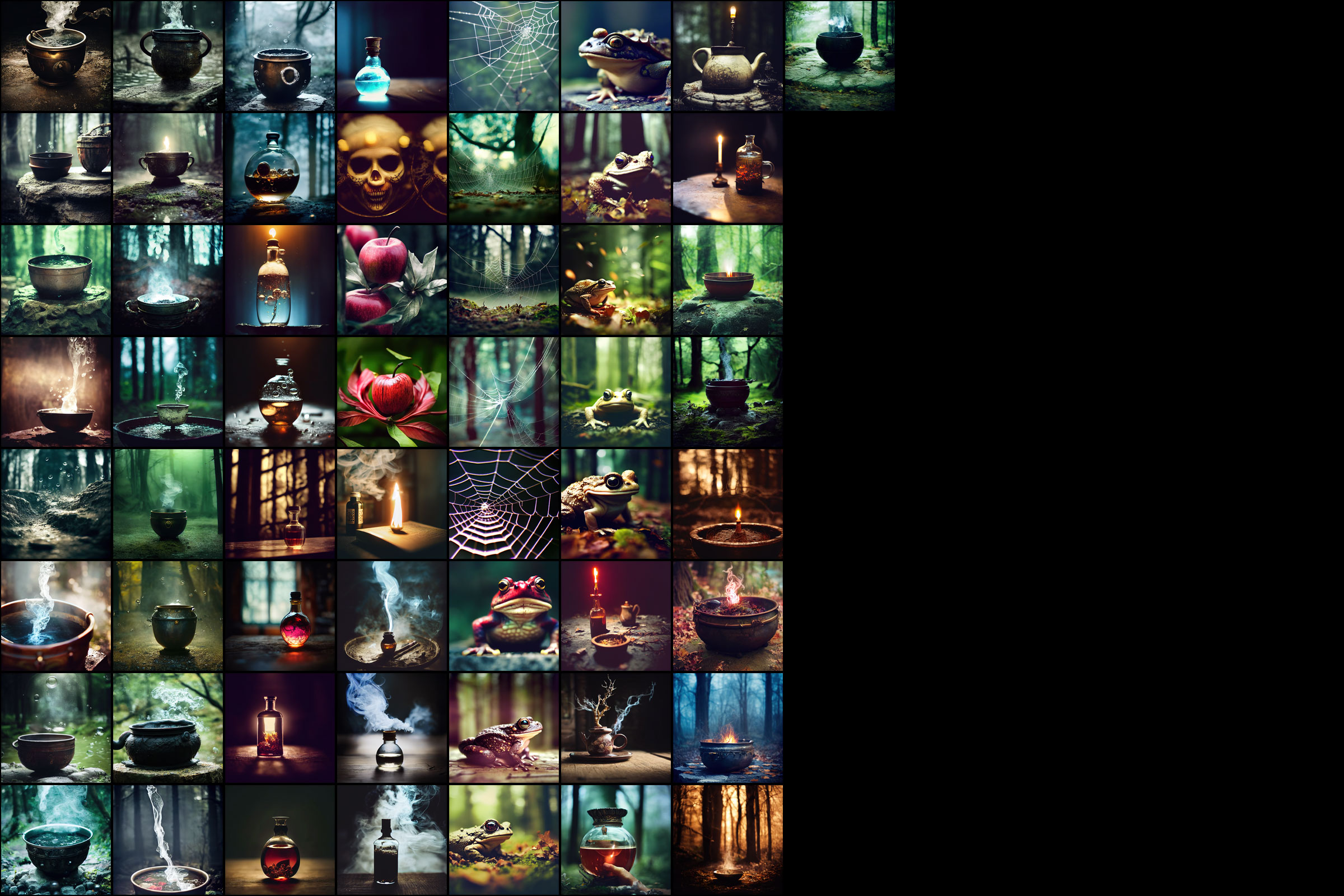 This package contains over 50 images, focused on Halloween Horrors. This pack includes items like potions, cauldrons, spider webs, and more.