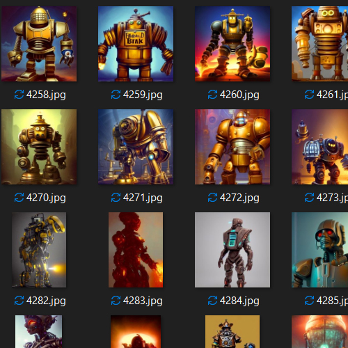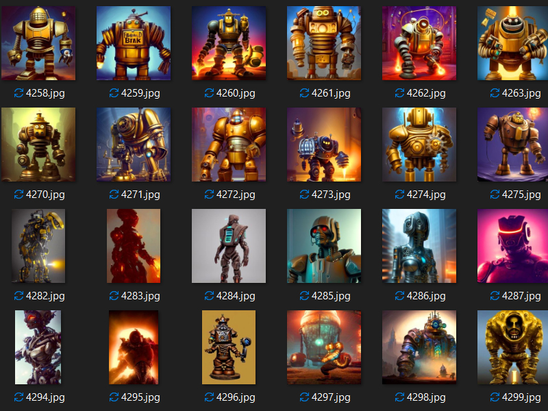 This package contains 75 images, focusing on Steampunk, Cyberpunk or Machine-like Golems.