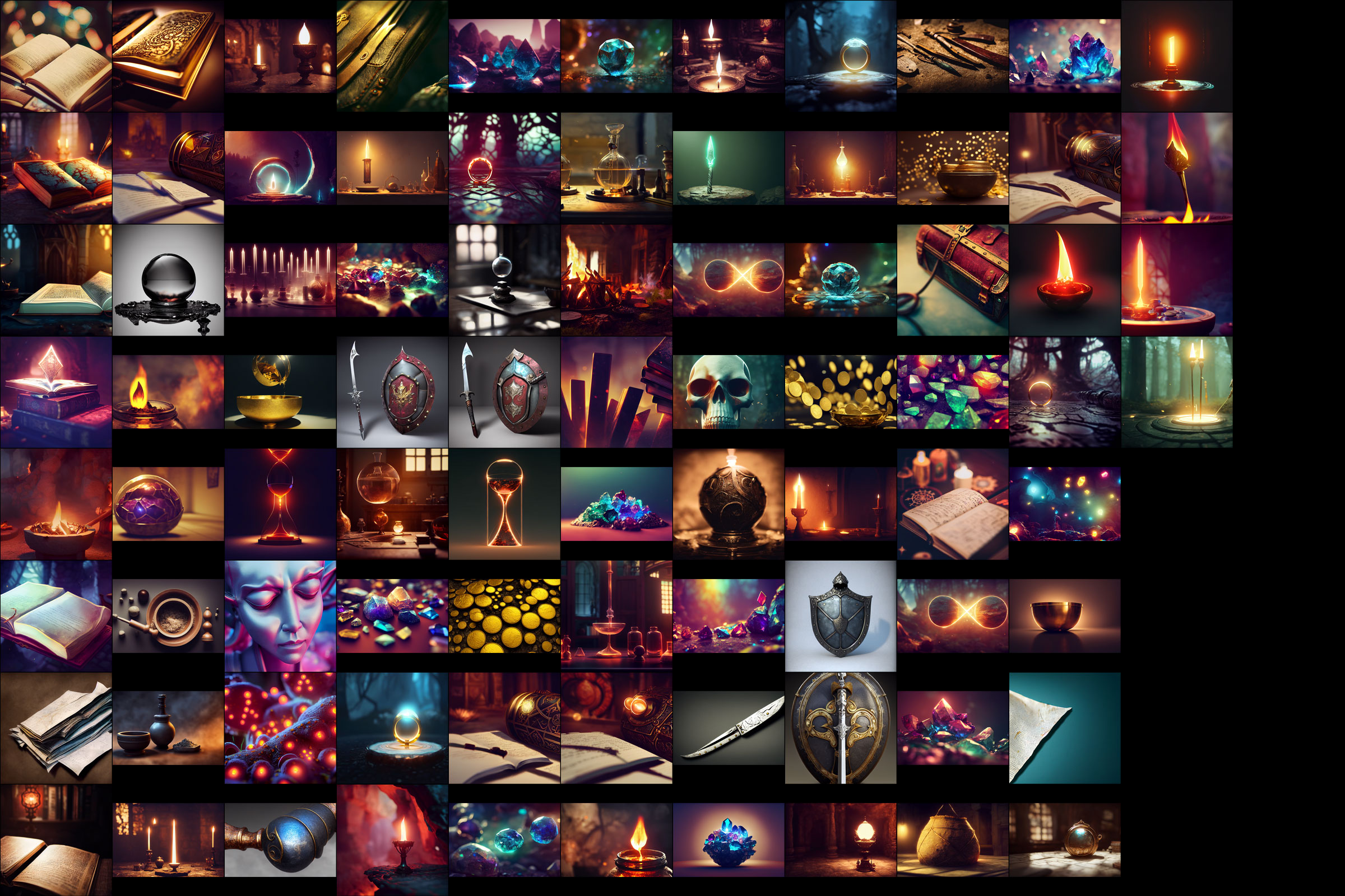 This package contains over 80 images, focused on objects and other "things" in the fantasy / RPG style.