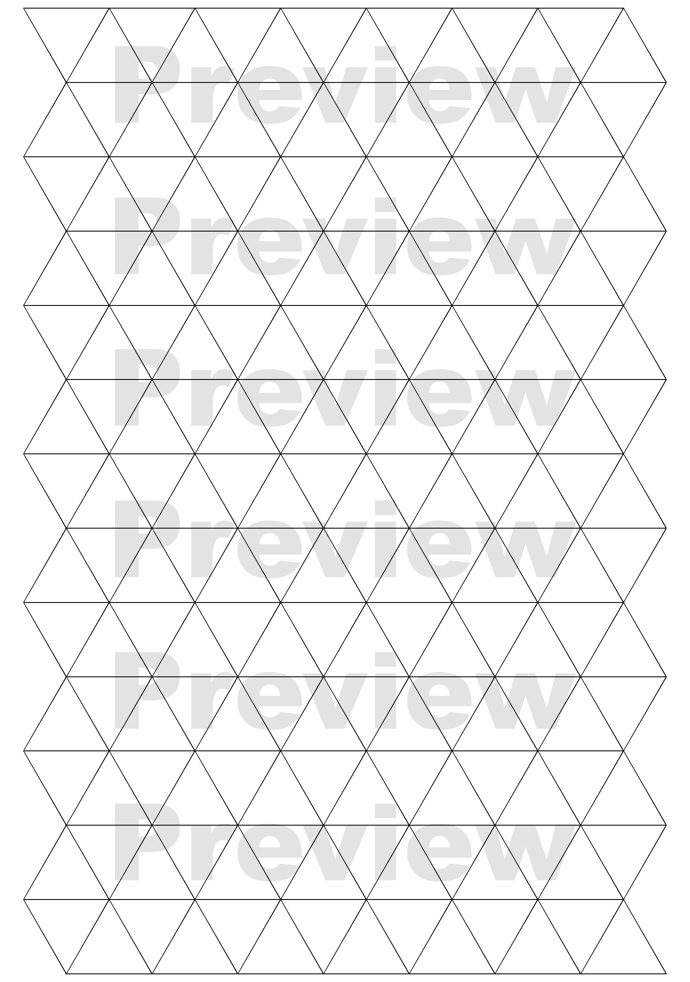 A template for A4 (210mm x 297mm) with seven by thirteen 1” (25mm) triangles.