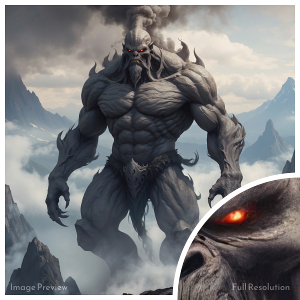 A beautiful illustration of an ash and smoke titan creature. Ideal for fantasy bosses, mythological adventures, and more.
