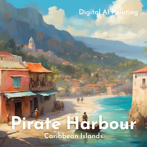 A beautiful digital painting of an old caribbean-inspired harbour town