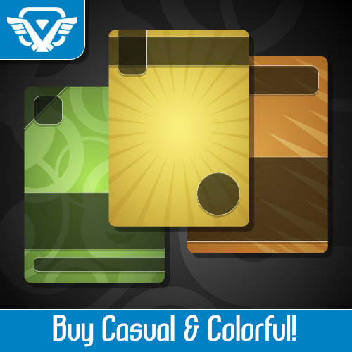 Casual, colorful, fun card game backgrounds, graphics, and icons. Card game starter template pack.