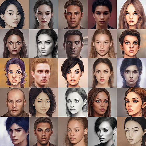 This package contains over 2000 character portraits created using AI, in multiple styles.