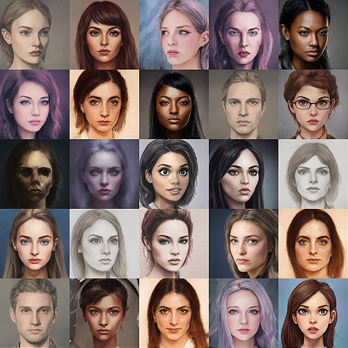 This package contains over 2300 character portraits created using AI, in multiple styles.