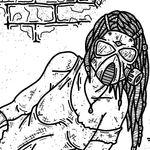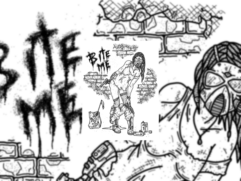 This is a character sketch of an armed tagger that's just used the alleyway she's been painting while armed and obviously ready for a fight.
