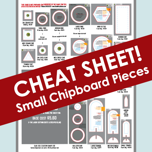 The letter-size JPG includes the material base price, plus the sizes, per-slug laser cut prices, and quantity per slug for all the items below. It's a perfect tool for eco- and budget-conscious game designers who want a quick and easy reference while prototyping.