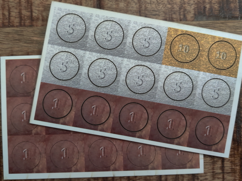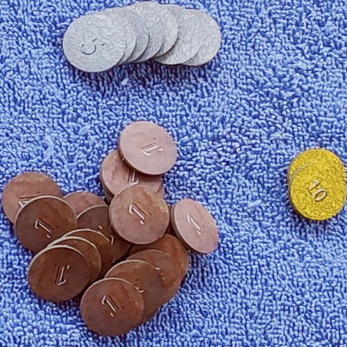Simple coin design for 1, 5, and 10 denominations for use with Medium Circle Chit Set