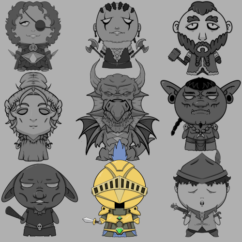 A cute Knight or Paladin in full armor part of a series of cute "chibi like" fantasy archtype design