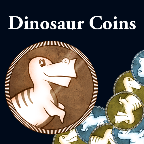 Coins with the depiction of a dinosaur. This pack comes with color options for bronze, silver, and gold. Each color having three different texture qualities to choose from.