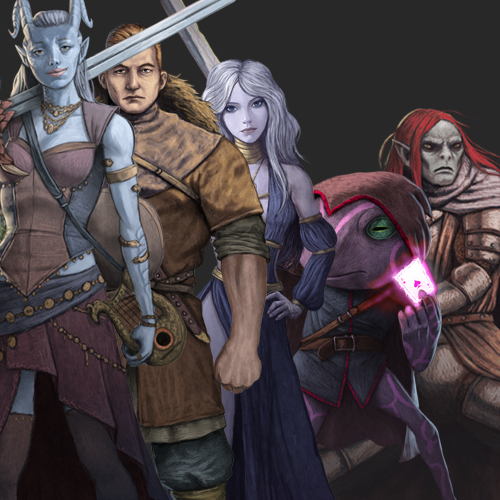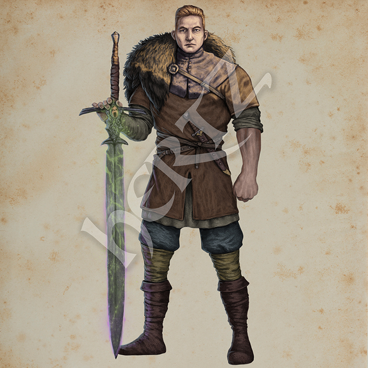Five high quality (3000 x 3000 pixels) images of fantasy characters. Each character illustration comes in three file formats: jpg (with background), png and tiff (with transparent backgrounds).
