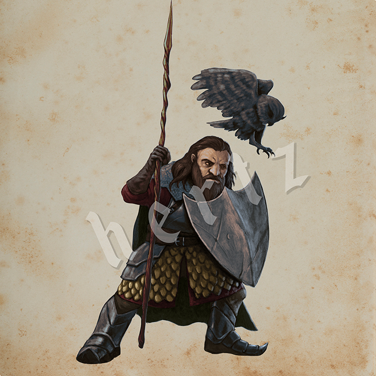 Five high quality, hand drawn (3000 x 3000 pixels) images of fantasy characters. Each character illustration comes in three file formats: jpg (with background), png and tiff (with transparent backgrounds).