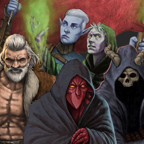 Five high quality, hand drawn (3000 x 3000 pixels) images of fantasy characters. Each character illustration comes in three file formats: jpg (with background), png and tiff (with transparent backgrounds).
