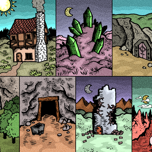 This art asset pack contains 8 colorful fantasy locations. Each location comes in two versions: Smooth, and Textured (16 images in total!). The following locations are included in this pack: