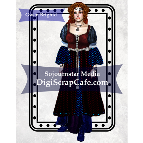 Gwen Brighid as named is a single character on a transparent png background. You can use her for game characters, or as a poser in a work of art. If you are a tagger, or scrapper, yo can add her to a kit you build around her, but you must follow my TOU.