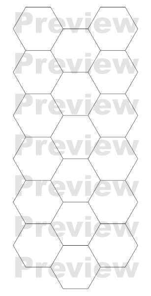 A template for the Half Board (5" x 10") with three by six 1.5” (38mm) hexes.
