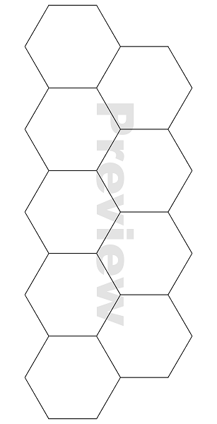 A template for the Half Board (5" x 10") with two by five 2” (50mm) hexes.