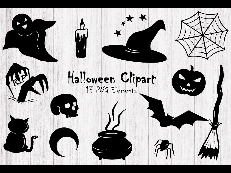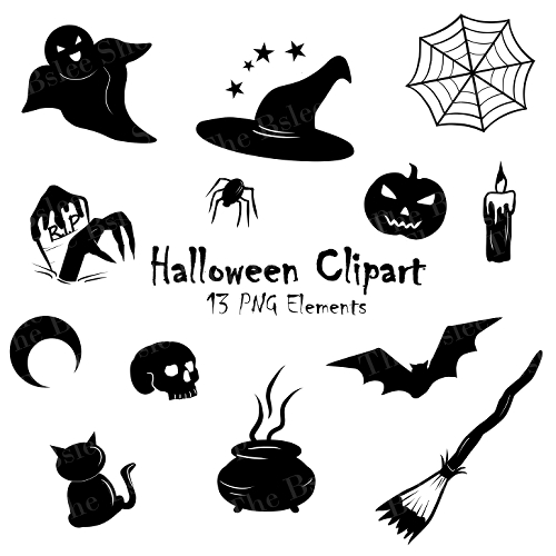 A spooky set of 13 PNG icons in black color. You can resize each element as per your preference.