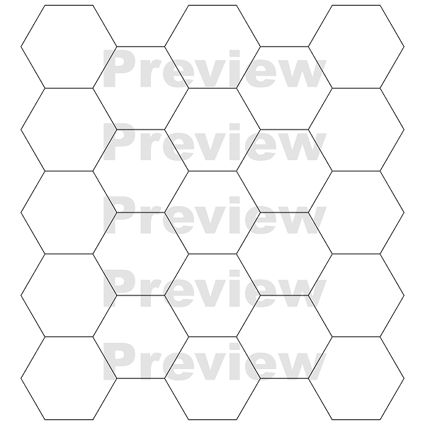 A template for Large Square Board (10" x 10") with five by five 2” (50mm) hexes.