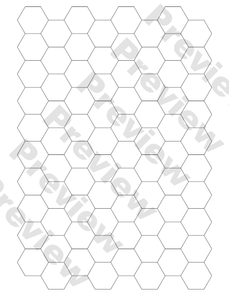 A template for Letter (8.5" x 11") with eight by ten 1” (25mm) hexes