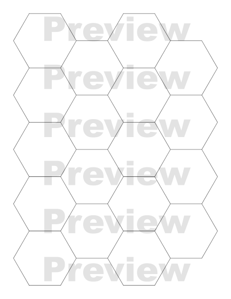 A template for Letter (8.5" x 11") with four by five 2” (50mm) hexes.