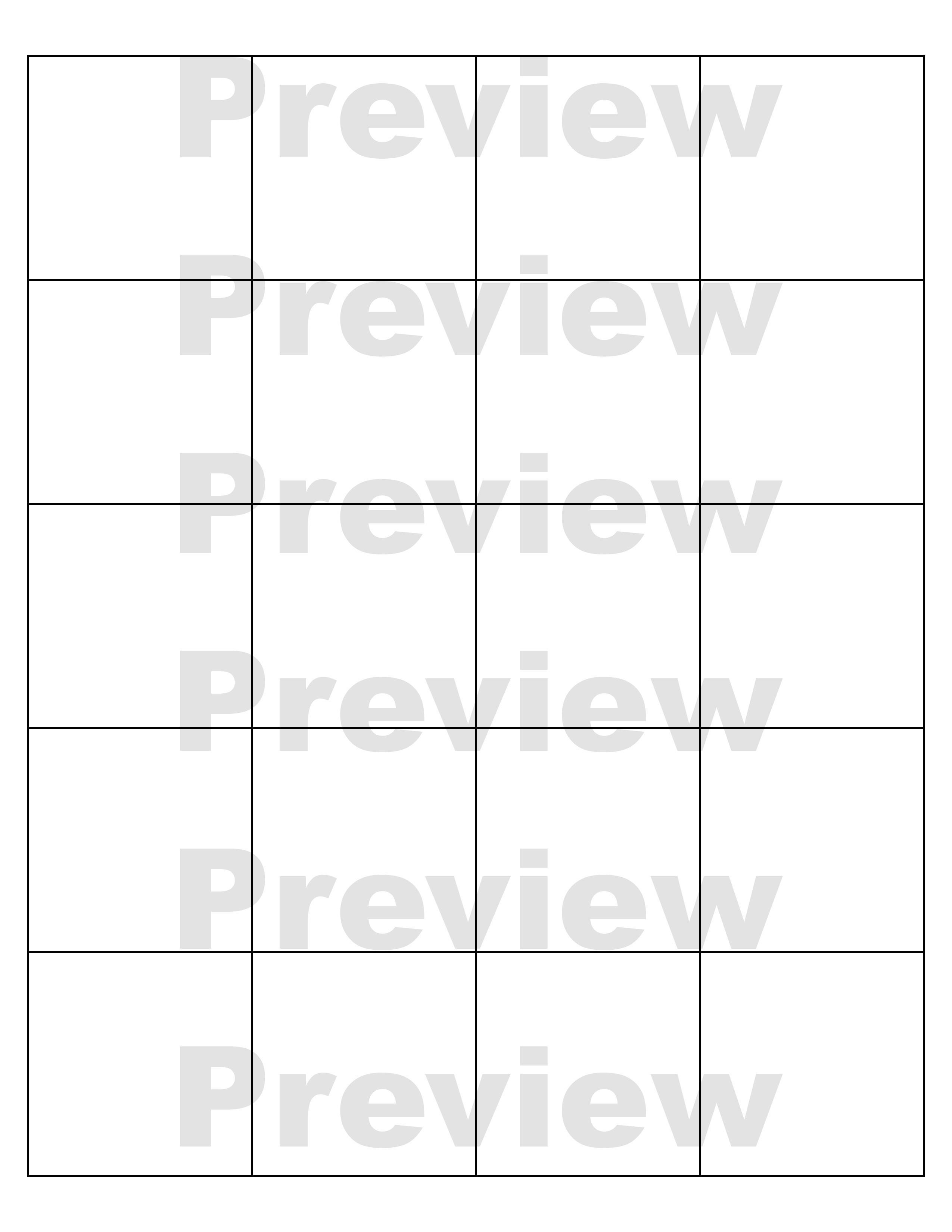A template for the Letter (8.5" x 11") with eight by ten 2” (50mm) squares.