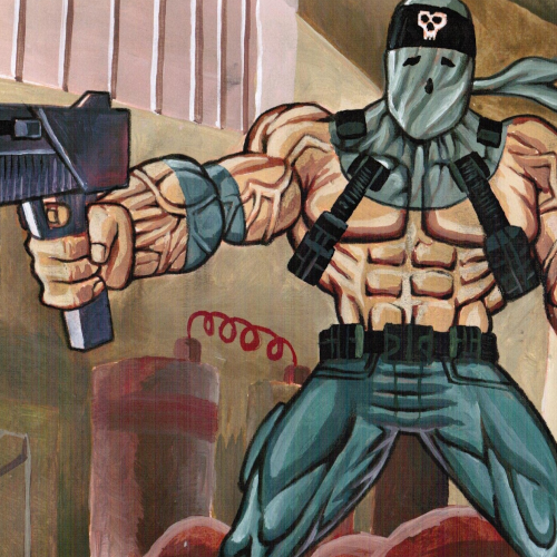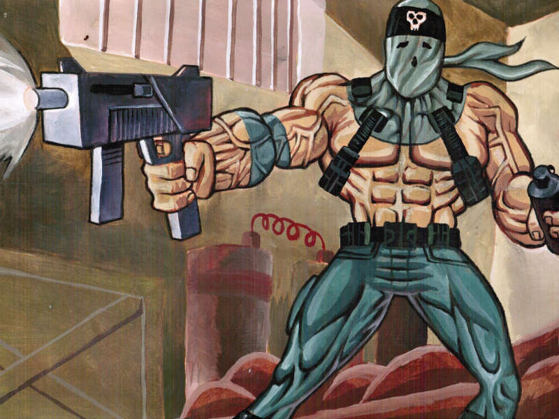 Masked Terrorist with weapon and grenade made with acrylic paint
