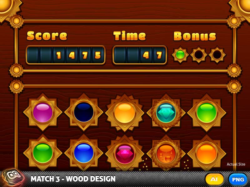 Jewel - Match 3 - Wood Effect - is a fun series of elements to create your own matching jewels game