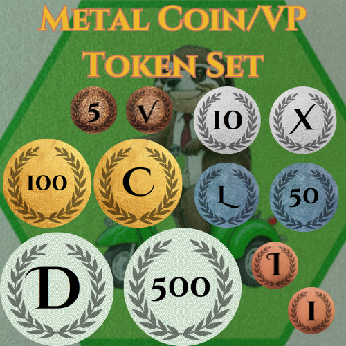 Pack includes heads, tails, and background texture for each of the six ddenominations in small, medium, large, and mini-tile image sizes for TGC upload. Zip file also contains a transparent background round image of each coin.
