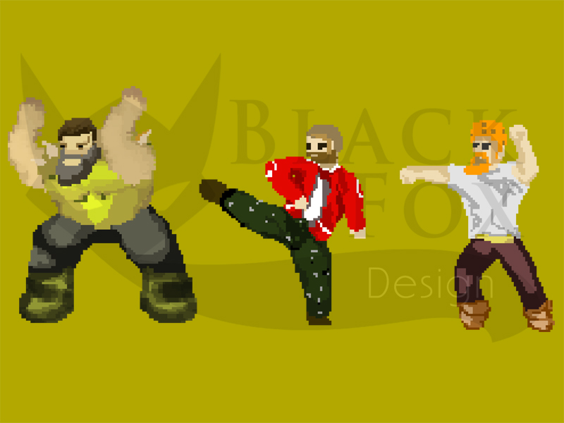 Pixel Game Bad Guys in 3 action poses. Can be used in a card game, digital application etc. File is layered .psd format.