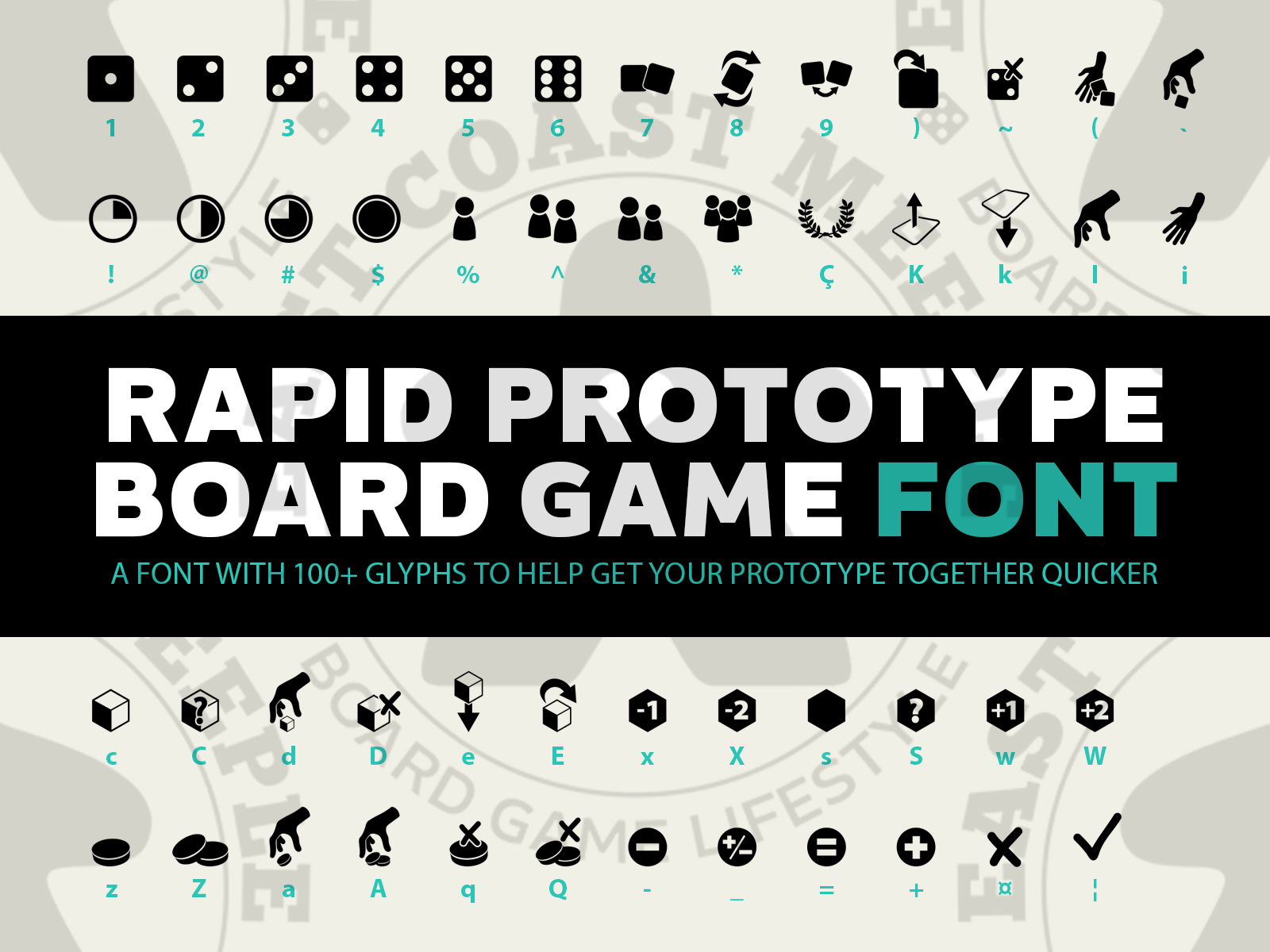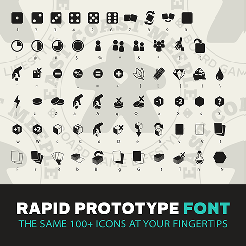 In the interest of helping people get their prototypes together faster (because everybody wants to get to the playtesting) we have put the 100+ icons previously released into a handy OpenType font with each icon mapped to a regular key on a standard keyboard.