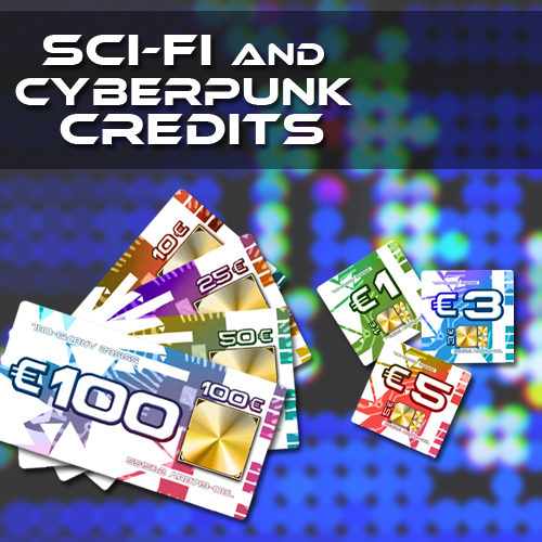 7 Sci-Fi and Cyberpunk Credit Designs (Light and Dark set) Print Ready