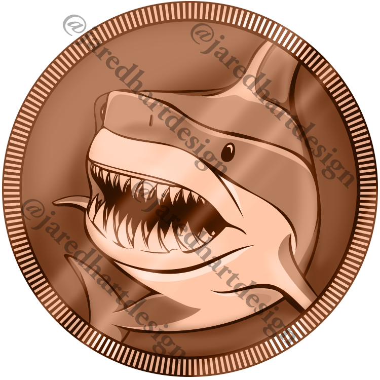 Coins with the depiction of a shark. This pack comes with color options for bronze, silver, and gold. Each color having three different texture qualities to choose from.