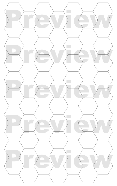 A template for the Small Game Mat (10" x 16") with seven by ten 1.5” (38mm) hexes.