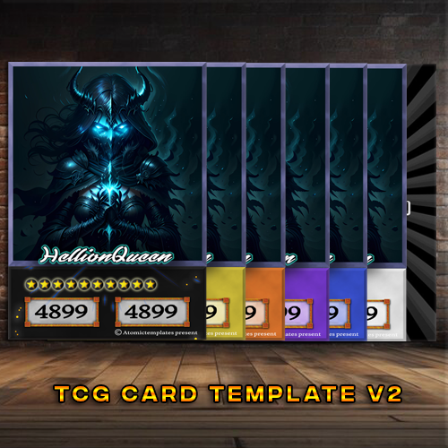 This template is perfect for enhancing your gaming with fantasy trading cards. It's designed carefully for creating your own unique cards. You can make all sorts of characters and creatures, like powerful wizards and legendary animals. Key Features: 1.Flexible Design: Create a variety of imaginative characters and monsters. 2.Superior Graphics: Enjoy stunning artwork that captures the magical world. 3.PSD Format: Customize each card easily with layered PSD files. You get files for both the front and back of the card. 4.Optimized for thegamecrafter.com: Perfectly meets the requirements of thegamecrafter.com for seamless card production. Note: The example card artwork is included with the template. The customizable can be added components are as follows: Number-stats-Icons-Rarity-Description