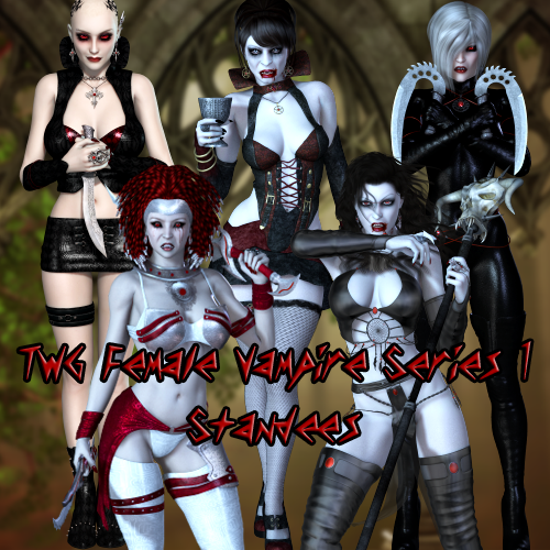 Product contains 8 TWG Female Vampire Series 1 Standees images in PNG format sized smaller so they can be used to make your own standee for game play or other projects.