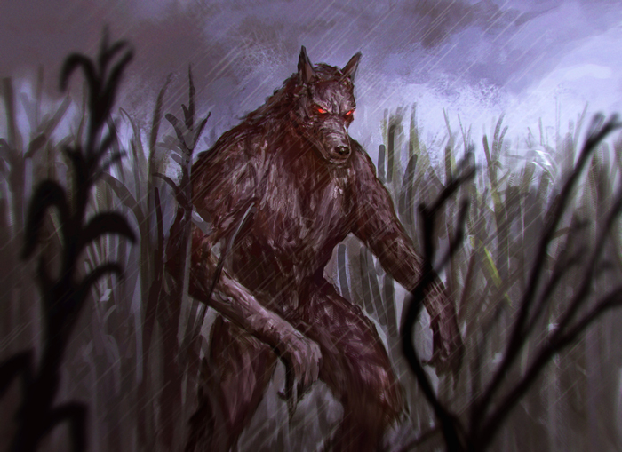 Pack of 5 digital illustrations depicting different types of werewolves and wolves in various environments and genres: fantasy, horror, sci-fi, historical...