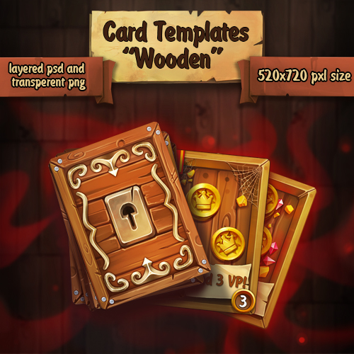 This product consists of a pre-made kit for creating any card templates. Just add your character or item to the card. In the files you will find PSD with all the important elements, so you only need to select the ones you like and place them where you need -- everything is very pretty simple! All elements are hand-drawn in one style and will always look amazing in your games.