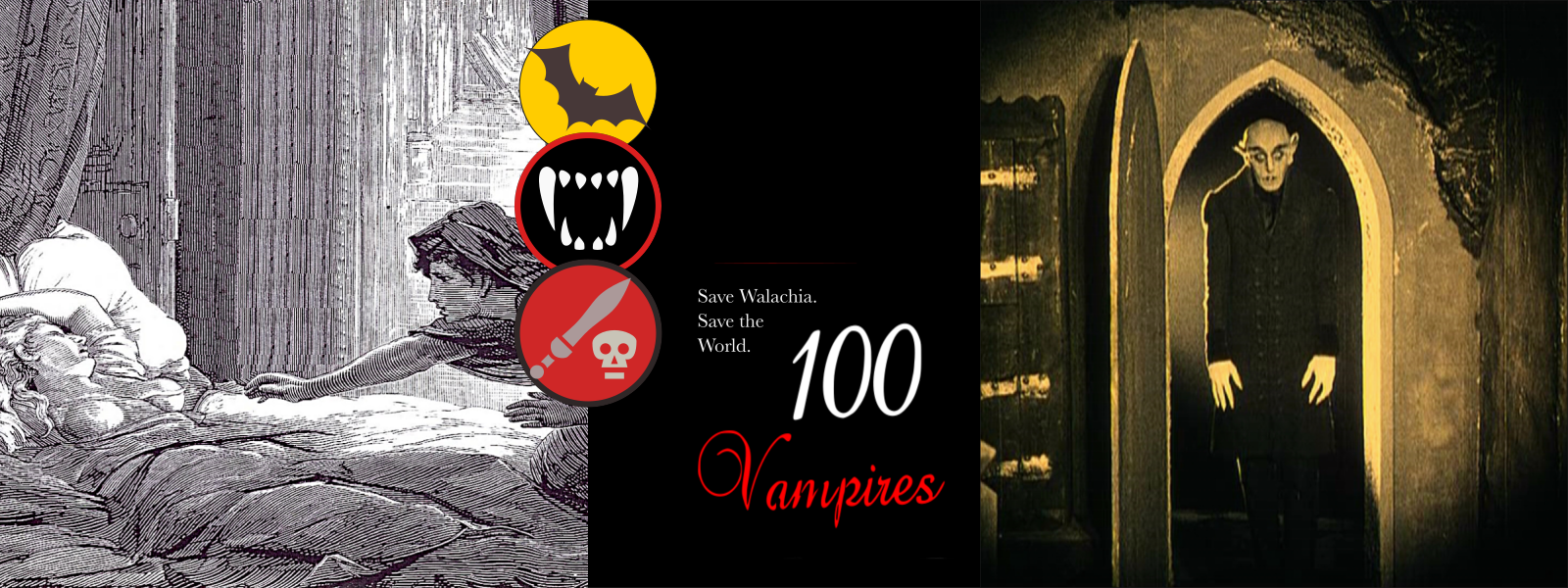 100 Vampires is a casual press your luck dice game with a hint of RPG flavor. Put it in your pocket and you'll always be ready for a game. You can teach your friends in about 3 minutes and play a full game in about 30. It's perfect for coffee dates, evenings at home, or while you are working the graveyard shift.