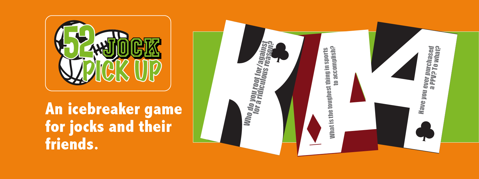 52 Jock Pickup is an ice breaker party game that gets the conversation going. Simply pull a card, ask the question and conversation ensues. The cards can also be used as a standard deck of cards.