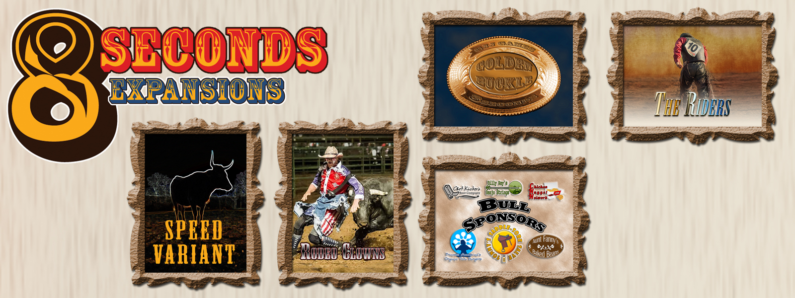 8 Seconds is a press-your-luck dice and card game for 1-6 players about the action and excitement of bull riding in a rodeo. These Expansion Modules can be used to change up the game and add more gameplay options. Included are four modules that can be used with the base game in any combination and one completely new way to play 8 Seconds: