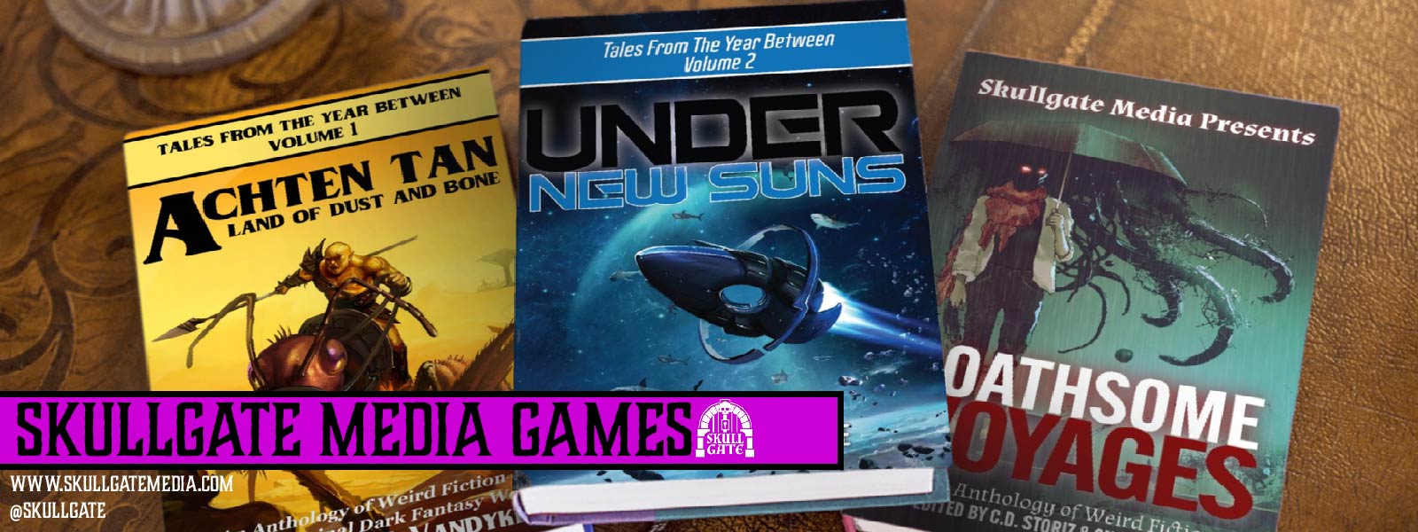 The Achten Tan Deck is a an original, 54 card poker deck inspired by the bizarre fantasy world of Achten Tan: Land of Dust and Bone, published by Skullgate Media. There are four original suits based on memorable elements from the Bone Wastes (G'ants, Tartles, Ribs, and Trees). Each suit has its own unique pips for cards 2-10, as well as a Jack, Queen, King, and decorative Ace. There are also two jokers, and the entire deck comes packaged in a decorative tuck box.