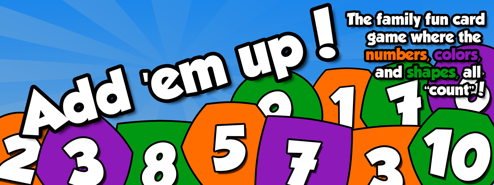 The game is simple. End with a collection of cards that add up to the highest amount. But final card values are just the number you see. Each color and shape adds to the card’s value. Keep track of 3 different value ranges as you draw and discard your cards, keeping a close eye on your competitors and “Add ‘em up” and see if you keep the best cards.