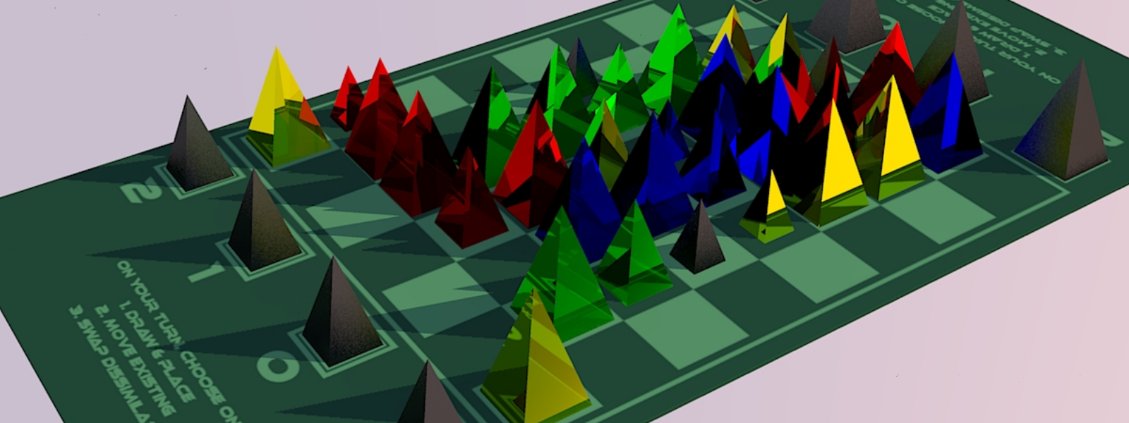Agents of M.A.R.S. is an abstract hidden information game about trying to place pyramids on a board in certain point scoring clusters while also trying to prevent your opponent from doing the same.